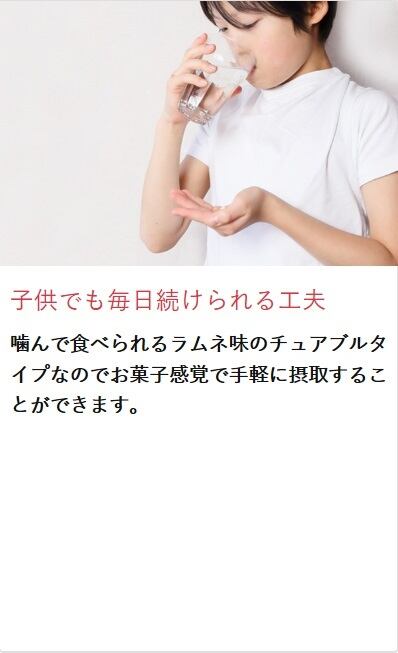 ラムネのように噛んで食べられるので、お菓子感覚で気軽に続けられます。